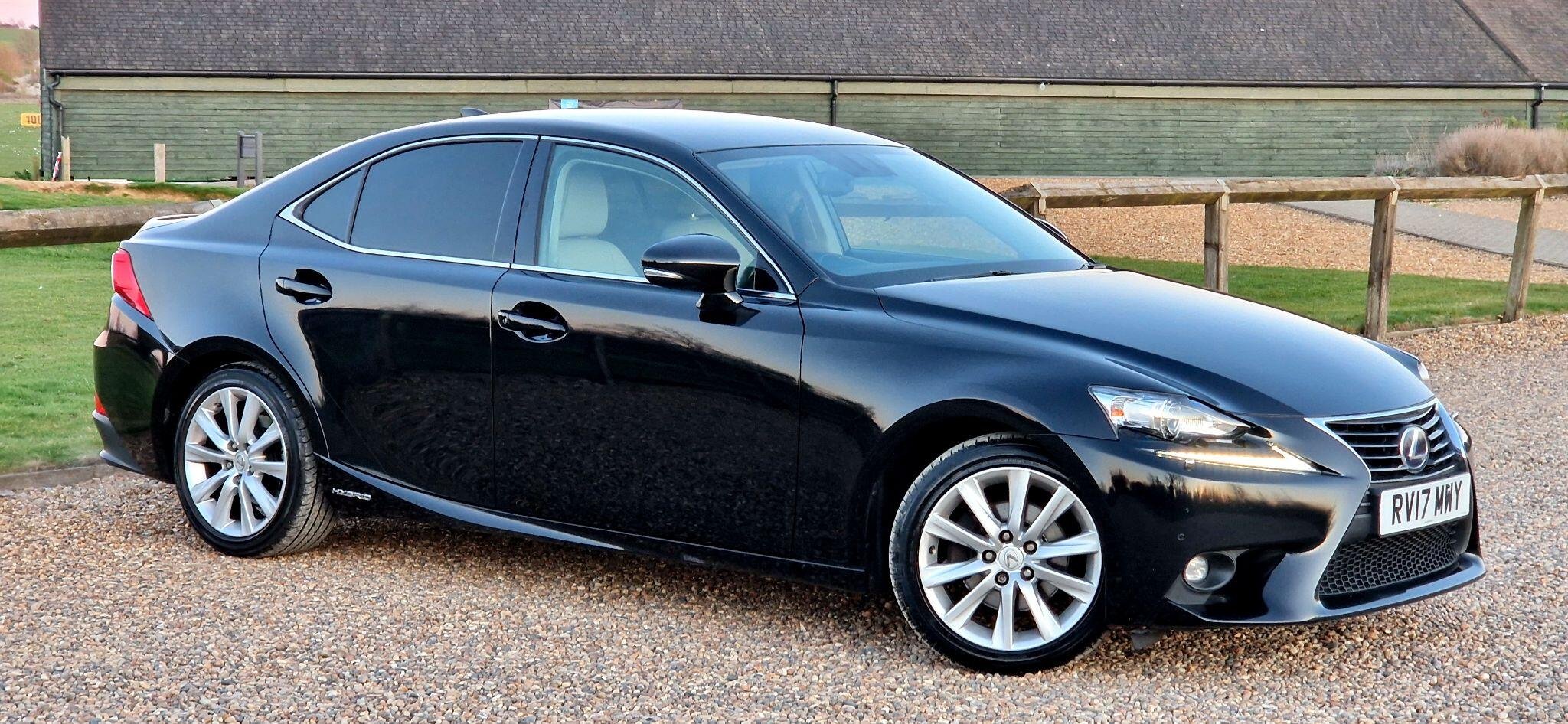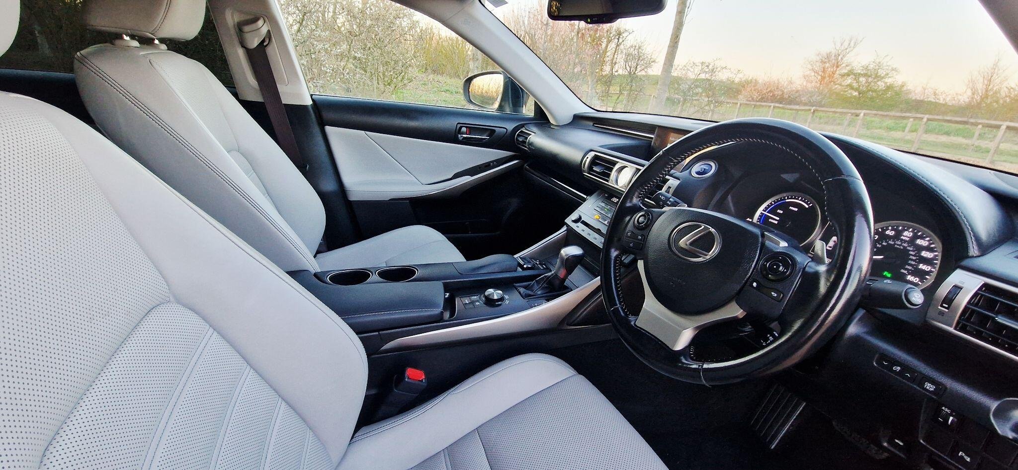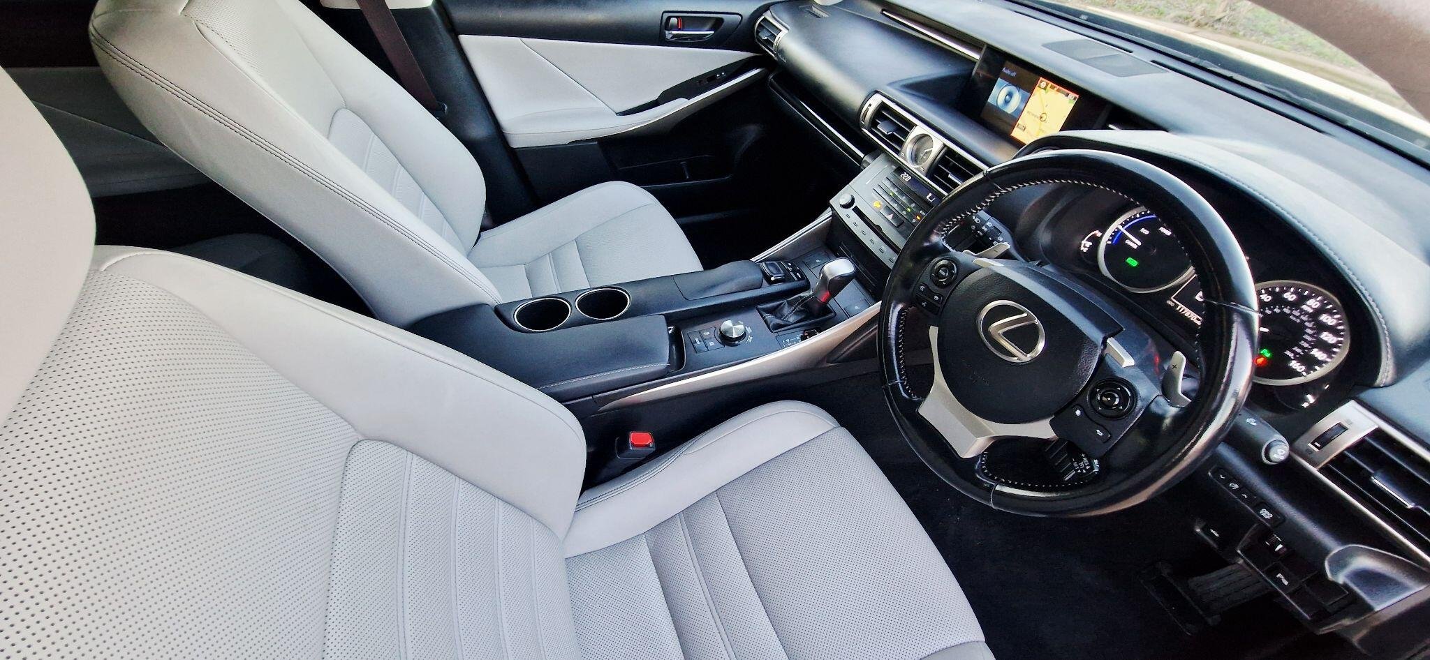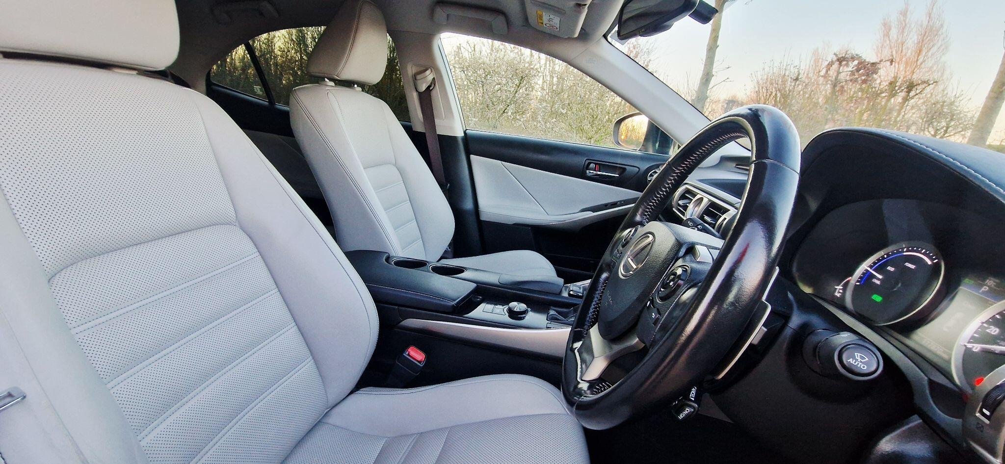 This 2017 Lexus IS 300h Luxury is a well maintained example having had only two owners from new and boasts a clear vehicle history check. Under the bonnet, you'll find an efficient 2.5 litre petrol hybrid engine, meeting Euro 6 emission standards. This particular model comes with the Luxury trim, featuring a Lexus Premium Navigation System complete with rear parking assistance and a reversing camera. For enhanced visibility, it is equipped with High Intensity Discharge Xenon headlights, and you can enjoy seamless audio with Bluetooth streaming. The interior is appointed with manual adjustment Ivory leather seats, complemented by ultra violet and heat insulating tinted glass for added comfort and privacy. The Lexus IS 300h Luxury offers a refined driving experience, and this specific vehicle stands out with its desirable features. The inclusion of the Premium Navigation system and rear camera makes parking straightforward, while the Xenon headlights provide excellent illumination. The Ivory leather interior adds a touch of elegance, and the tinted glass helps to keep the cabin cool and protected from the sun's rays. These elements combine to make this Lexus IS 300h a compelling choice for those seeking a premium and well equipped hybrid saloon. -