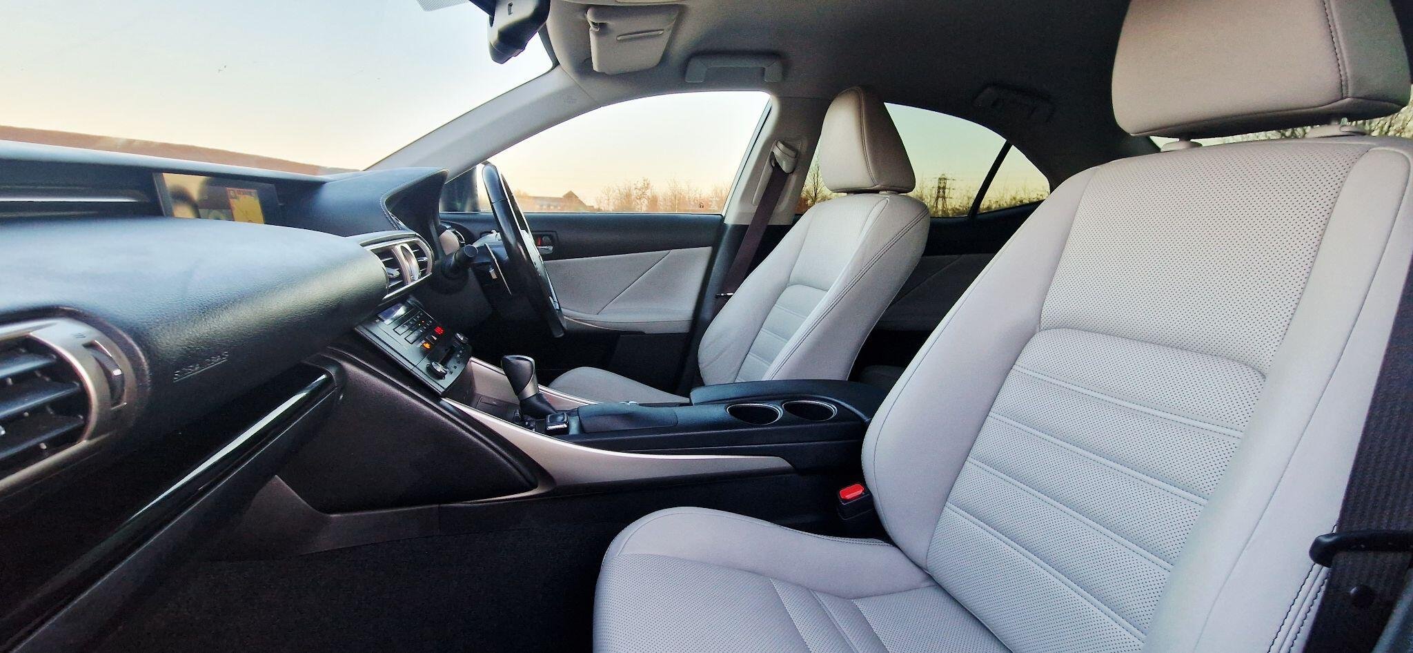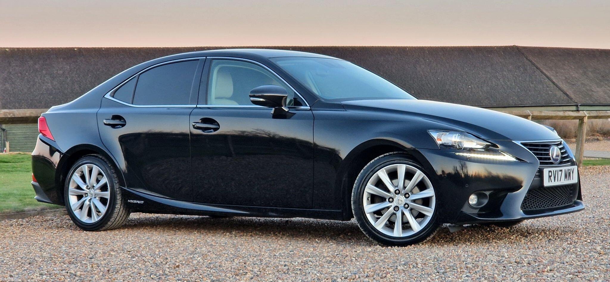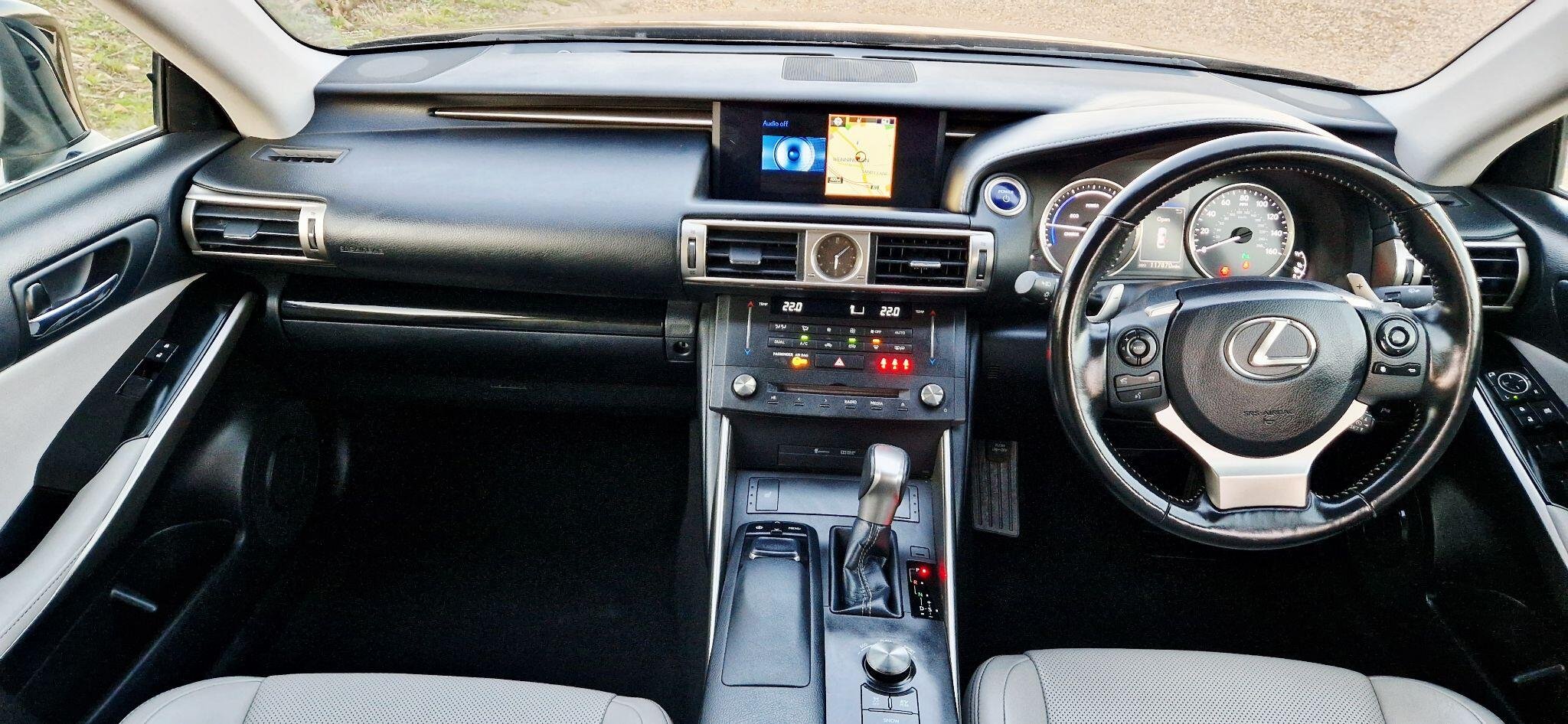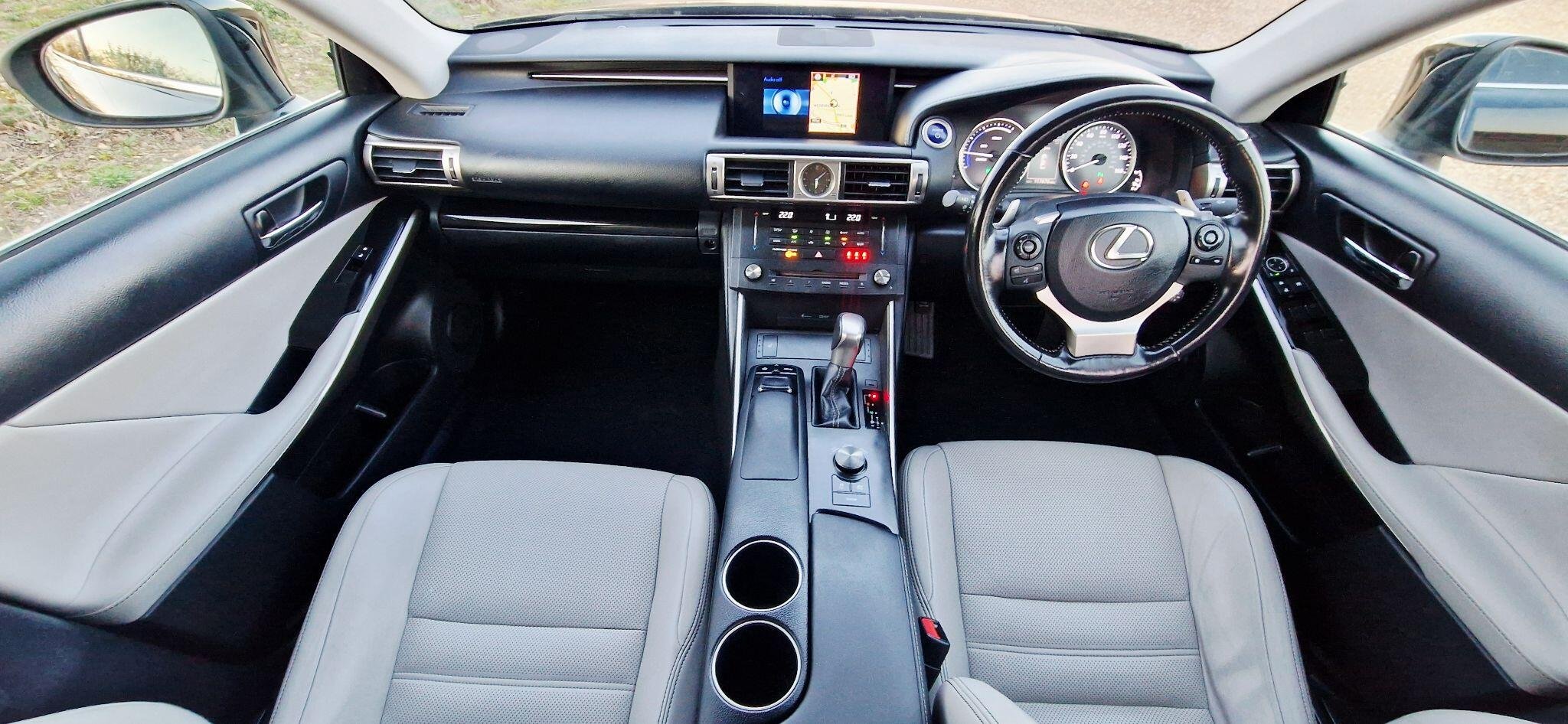 This 2017 Lexus IS 300h Luxury is a well maintained example having had only two owners from new and boasts a clear vehicle history check. Under the bonnet, you'll find an efficient 2.5 litre petrol hybrid engine, meeting Euro 6 emission standards. This particular model comes with the Luxury trim, featuring a Lexus Premium Navigation System complete with rear parking assistance and a reversing camera. For enhanced visibility, it is equipped with High Intensity Discharge Xenon headlights, and you can enjoy seamless audio with Bluetooth streaming. The interior is appointed with manual adjustment Ivory leather seats, complemented by ultra violet and heat insulating tinted glass for added comfort and privacy. The Lexus IS 300h Luxury offers a refined driving experience, and this specific vehicle stands out with its desirable features. The inclusion of the Premium Navigation system and rear camera makes parking straightforward, while the Xenon headlights provide excellent illumination. The Ivory leather interior adds a touch of elegance, and the tinted glass helps to keep the cabin cool and protected from the sun's rays. These elements combine to make this Lexus IS 300h a compelling choice for those seeking a premium and well equipped hybrid saloon. -