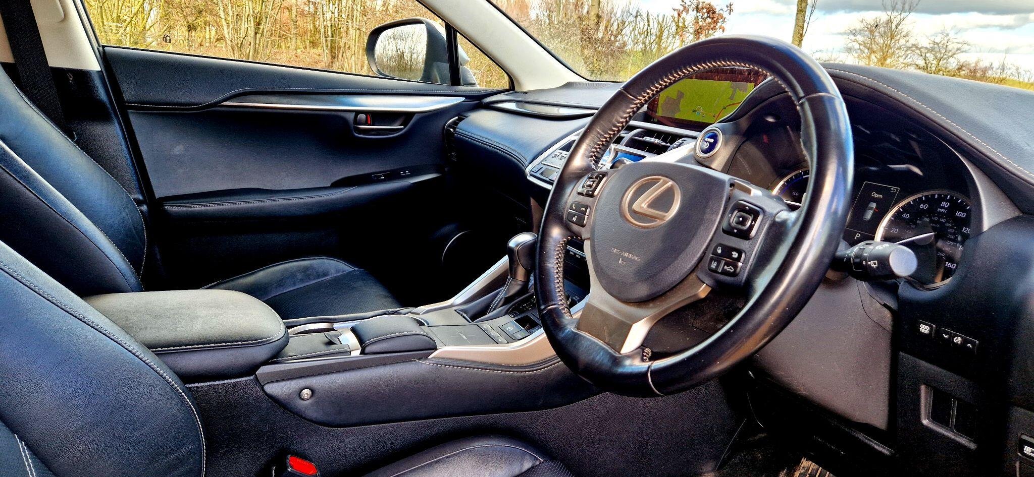 Discover this 2018 Lexus NX 300h Luxury, a sophisticated four wheel drive SUV that offers an exceptional blend of efficiency and performance. Powered by a 2.5 litre petrol hybrid engine and meeting Euro 6 emissions standards, this model is equipped with Sat Nav,Reverse camera,Smooth Black Leather Interior,ABS,VSA,Trip computer,Airbags,Cd player,Bluetooth,Wiresless Phone Charger,Remote central locking, Immobilizer,Power windows, Fog lights,Climate Control,Heated Seats,Cruise control,Day running LED lights,Aircon,Auto Folding wing mirrors,Surround sound,Xenon Head lamps,Tinted windows,Pre Crash System,Rear Running LED lights This Lexus NX 300h Luxury stands out with its generous boot space, providing ample room for all your needs. The car comes with a higher level of specification compared to other similar vehicles, offering enhanced comfort and practicality. The four wheel drive system ensures confident handling in various conditions, making this NX a well rounded and appealing choice for any discerning driver. -