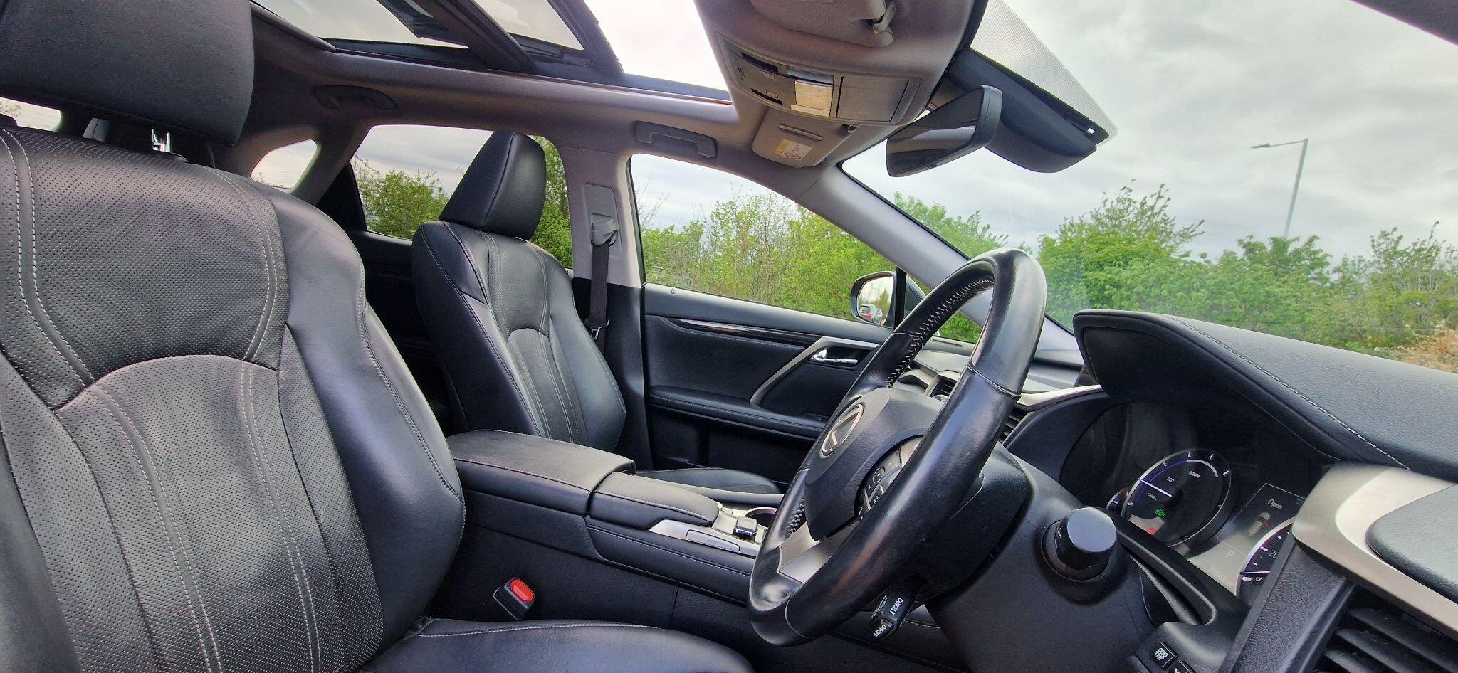 This 2017 Lexus RX 450h Luxury boasts a clear vehicle history, offering peace of mind alongside its premium features. This Four Wheel Drive SUV is powered by a 3.5L Petrol Hybrid engine, meeting Euro 6 emissions standards. It comes equipped with the Luxury trim is enhanced by a panoramic roof, including an opening sunroof, and distinctive 3 eye shaped LED headlights with auto high beam functionality. The Lexus RX 450h Luxury stands out with its impressive performance, accelerating from 0 to 62mph in just 7.7 seconds, demonstrating its dynamic capability. Furthermore, its placement in a low insurance group indicates that running costs are likely to be more economical compared to similar vehicles. These attributes, combined with its sophisticated features and hybrid technology, position this Lexus RX as a compelling choice for those seeking a refined and efficient SUV. -